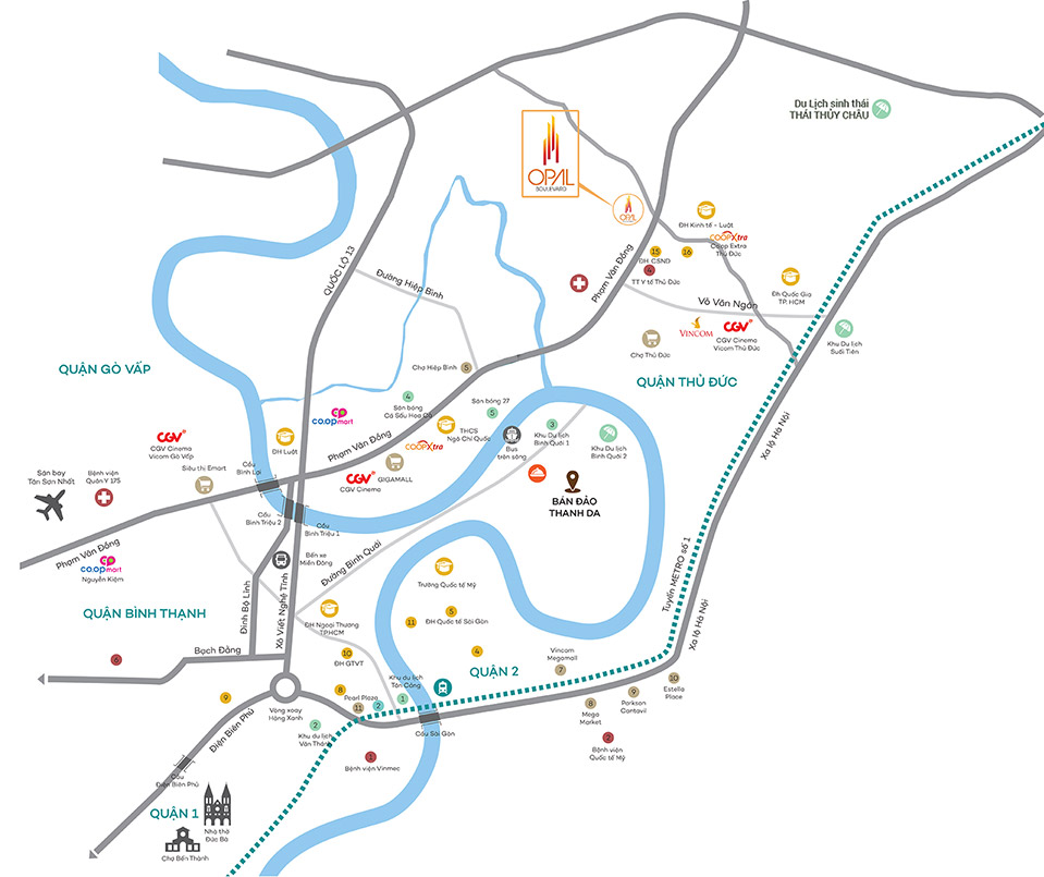 Tọa lạc trên trục đại lộ Phạm Văn Đồng, Opal Boulevard có vị trí giao thương chiến lược, nằm giữa Tp.HCM, Đồng Nai, Bình Dương, mang lại lợi thế kết nối độc đáo mà không dự án nào sánh được.